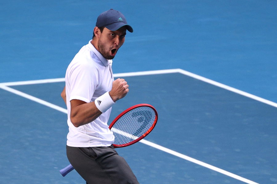 Tennis – Australian Open – Melbourne Park, Melbourne, Australia, February 12, 2021 Russia’s Aslan Karatsev reacts during his third round match against Argentina’s Diego Schwartzman REUTERS/Loren Elliott