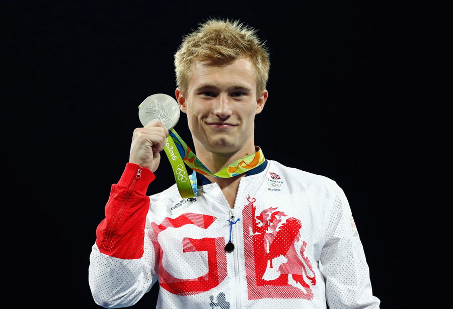 RIO DE JANEIRO, BRAZIL – AUGUST 16: Silver medalist Jack Laugher of Great Britain poses during the medal ceremony for the Men’s Diving 3m Springboard final at the Maria Lenk Aquatics Centre on August 16, 2016 in Rio de Janeiro, Brazil. (Photo by Clive Rose/Getty Images)