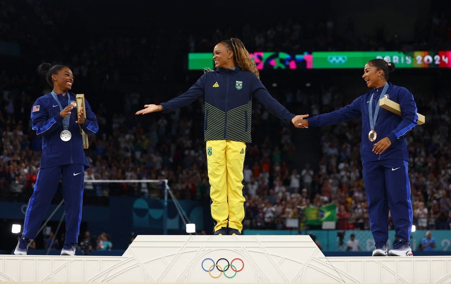 The scene struck a chord with Nadia Comǎneci, who shared the stage with Andrade at a Laureus ‘Olympic Reflections’ event in Madrid. The Olympic legend said, “That was an amazing, historic photo, and I think it should become a trend of the podium… To appreciate it like that shows an amazing respect.” Rebeca Andrade, who described the experience of hearing her anthem as giving her “goosebumps,” reflected on the weight of that moment.