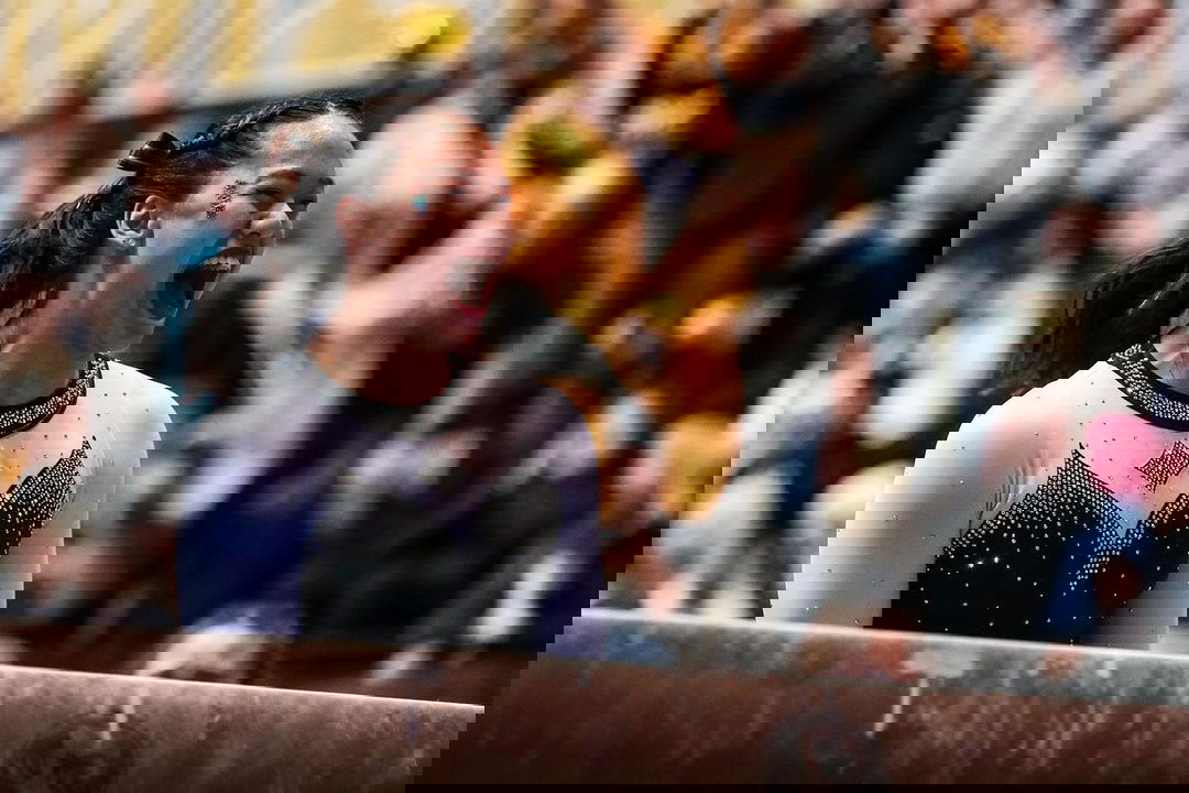 But then came Columbia, Missouri. She was in town for the wedding and crashed with current Missouri senior Jocelyn Moore. One day, she tagged along to the gym—just for fun. Just to watch. Just to stretch a little. But when she stepped on the beam after 15 months… something clicked.