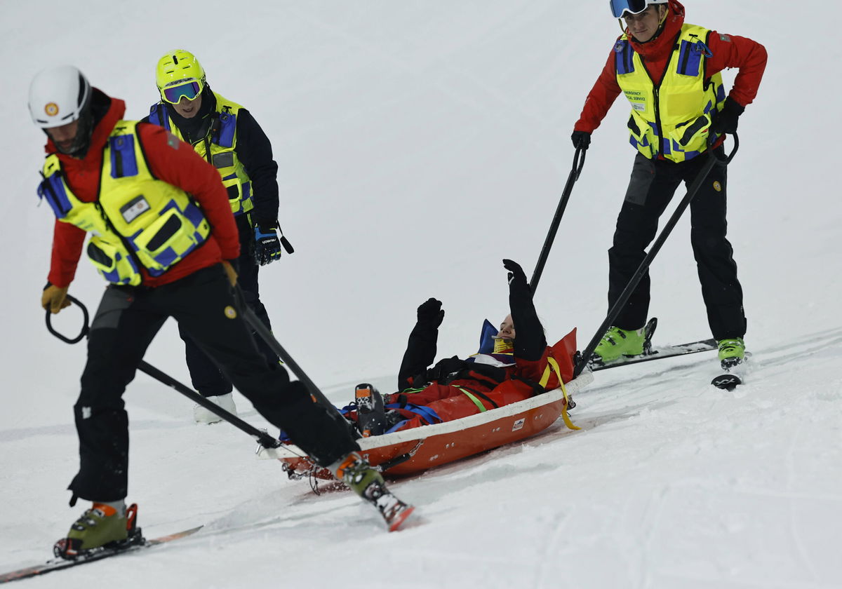 260219 — LIVIGNO, Feb. 19, 2026 — Cassie Sharpe of Canada is transferred away after falling during the qualification of freestyle skiing women s freeski halfpipe at the Milan-Cortina 2026 Olympic Winter games, Winterspiele,Spiele, Summer games in Livigno, Italy, Feb. 19, 2026. MICO2026ITALY-LIVIGNO-OLYMPIC WINTER GAMES-FREESTYLE SKIING-WOMEN S FREESKI HALFPIPE-QUALIFICATION WangxPeng PUBLICATIONxNOTxINxCHN