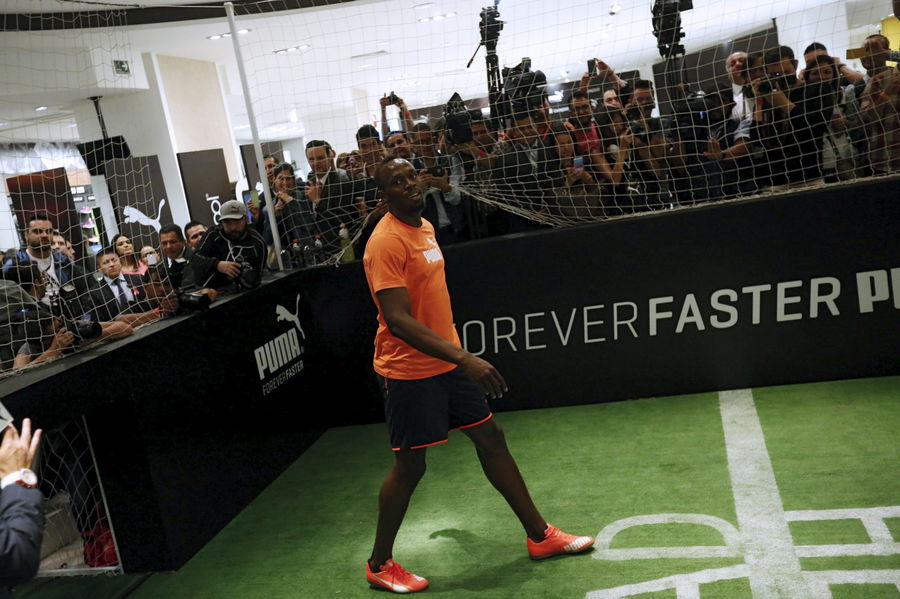Jamaican sprinter Usain Bolt walks during an event arranged by his sponsors in Mexico City, October 7, 2015. REUTERS/Edgard Garrido