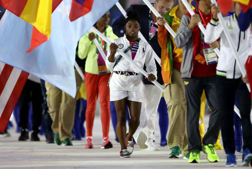 Simone Biles became the first female gymnast and black woman to carry the US flag