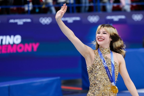 February 19, 2026, Milan, Italy: Gold medalist Alysa Liu of United States of America celebrates during the Figure skating, Eiskunstlauf Women Single Skating – Free Skating of the Milano Cortina 2026 Winter Olympics at Milano Ice Skating Arena. Milan Italy – ZUMAs197 20260219_aaa_s197_809 Copyright: xFabrizioxCarabellix
