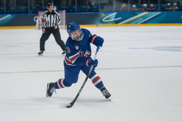 2026 Winter Olympics: Italy vs USA Women s Hockey Cayla Barnes 3 of the United States shoots during a quarterfinal game against Italy in the Milano Cortina 2026 Winter Olympics, Friday, February 13, 2026, at the Milano Rho Ice hockey, Eishockey Arena, in Milan, Italy. USA defeated Italy 6-0. Jon Endow/Image of Milan Lombardy Italy EDITORIAL USE ONLY Copyright: xJonxEndowx JonxEndowx iosphotos395807