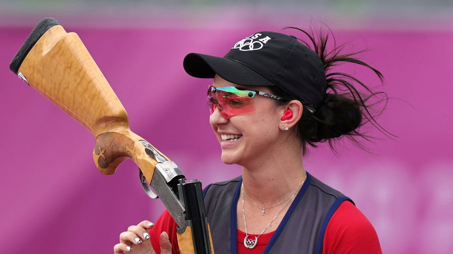 Tokyo 2020 Olympics – Shooting – Women’s Trap – Final – Asaka Shooting Range, Tokyo, Japan – July 29, 2021. Silver medalist Kayle Browning of the United States celebrates REUTERS/Ann Wang