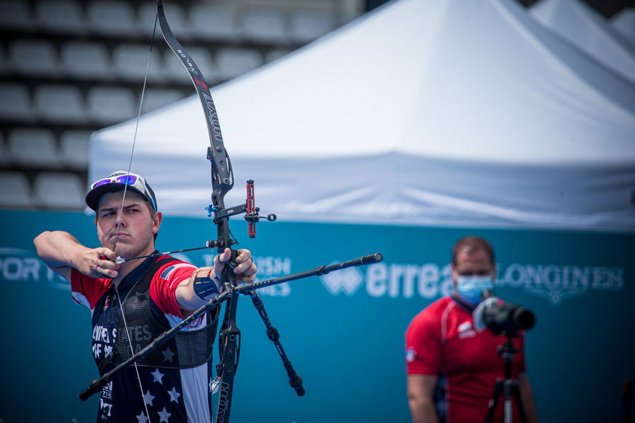 PARIS, FRANCE – JUNE 27: In this handout image provided by the World Archery Federation, Jack Williams of USA during the Men’s recurve finals during the Hyundai Archery World Cup 2021 Stage 3 on June 27, 2021 in Paris, France. (Photo by Dean Alberga/Handout/World Archery Federation via Getty Images )