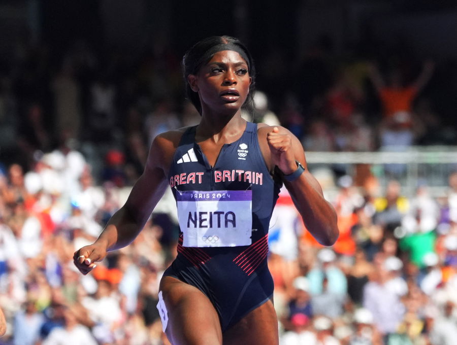 Paris 2024 Olympics – Athletics – Women’s 200m Round 1 – Stade de France, Saint-Denis, France – August 04, 2024. Daryll Neita of Britain crosses the lline to win heat 3. REUTERS/Sarah Meyssonnier