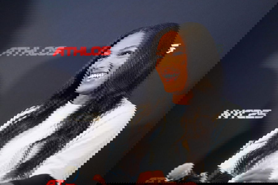 October 9, 2025, New York, New York, USA: Tara Davis-Woodhall looks on during the press conference, PK, Pressekonferenz for the Athlos NYC event. New York USA – ZUMAh304 20251009_zsp_h304_016 Copyright: xAlexxHallowayx