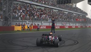 Vettel celebrating his title at the Indian Grand Prix