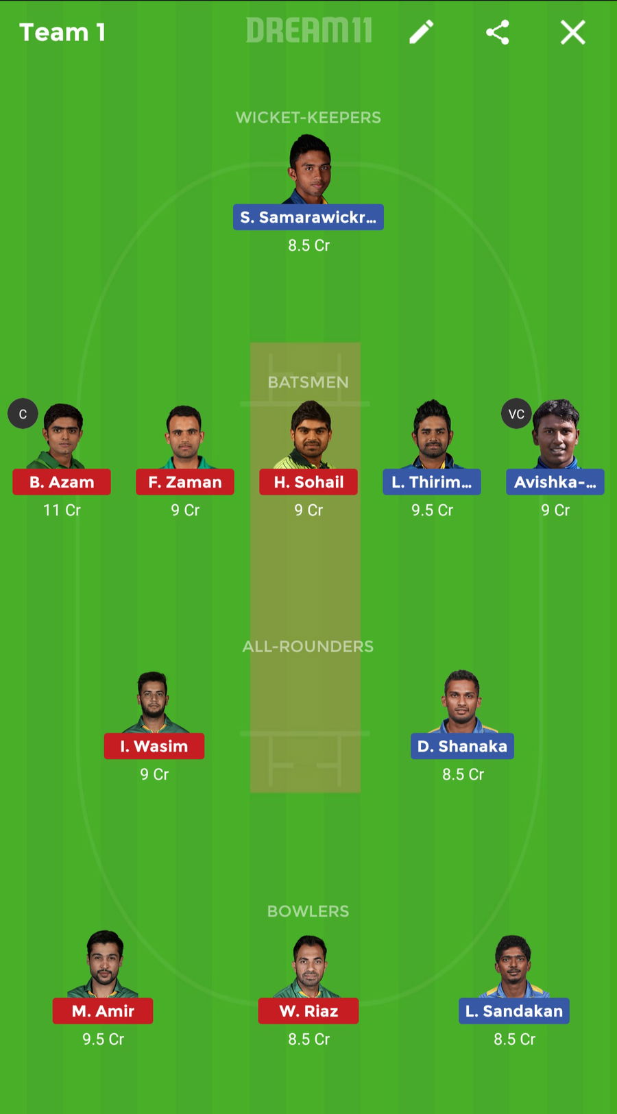 Batters: Babar Azam, Fakhar Zaman, Haris Sohail, Lahiru Thirimanne, Avishka Fernando