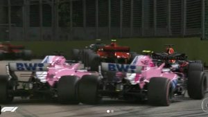 In Singapore, the Mexican driver was involved in a number of incidents. At the start, he collided with his Racing Point Force India team-mate Esteban Ocon, sending him into the barrier and out of the race.