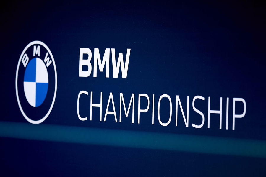 OLYMPIA FIELDS, IL – AUGUST 27: A detail view of the BMW Championship logo is seen during the first round of the BMW Championship on the North Course at Olympia Fields Country Club on August 27, 2020 in Olympia Fields, Illinois. (Photo by Robin Alam/Icon Sportswire via Getty Images)
