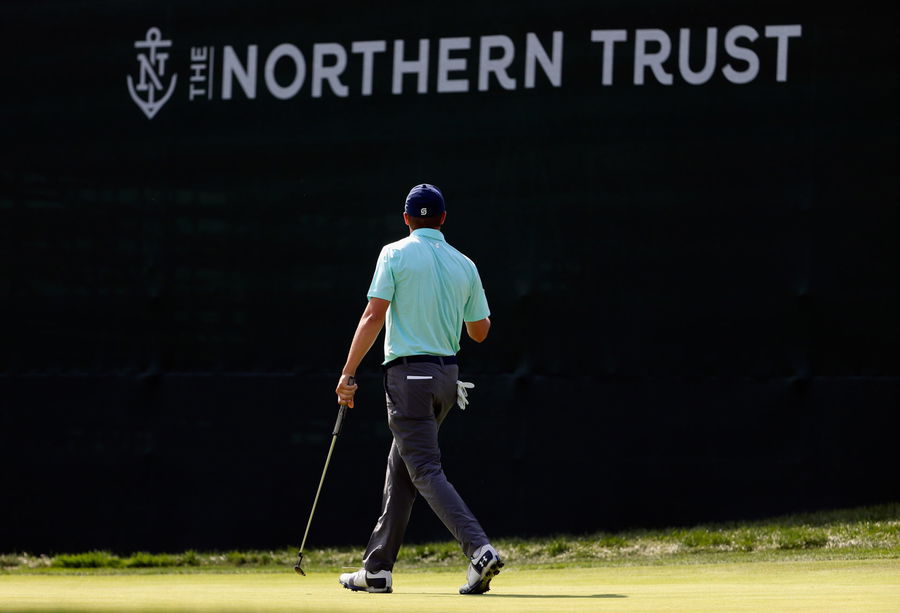 WESTBURY, NY – AUGUST 26: Jordan Spieth of the United States walks on the eighth green during round three of The Northern Trust at Glen Oaks Club on August 26, 2017 in Westbury, New York. (Photo by Jamie Squire/Getty Images)