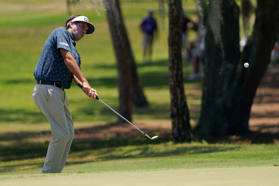 May 2, 2021; Palm Harbor, Florida, USA; Bubba Watson chips on to the green of the 2nd hole during the final round of the Valspar Championship golf tournament. Mandatory Credit: Jasen Vinlove-USA TODAY Sports