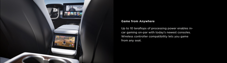 According to the Tesla website, the CPU in the Model S Arcade runs on 10 teraflops. Right off the bat, it beats the Xbox Series S by almost double the power, as the lower-end console can only manage a speed of 4 teraflops.