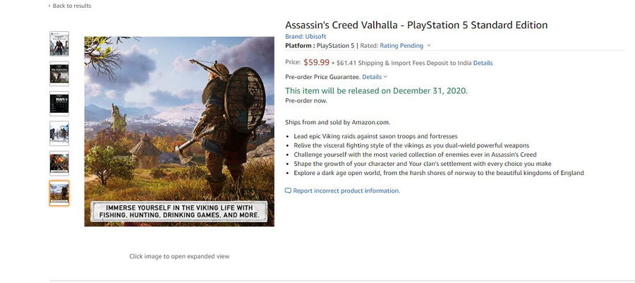 We know that the game will release on November 14, 2020 for Xbox One, PC, and PS4. And now, a listing of the PS5 version of the game has emerged on Amazon that explicitly says, “this item will be released on December 31, 2020.”