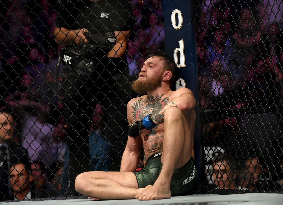 LAS VEGAS, CA – OCTOBER 06: Conor McGregor sits on the canvas after being submitted by Khabib Nurmagomedov during UFC 229 lightweight championship match at the T-Mobile Arena in Las Vegas, Nev. Friday, Oct. 6, 2018. (Photo by Hans Gutknecht/Digital First Media/Los Angeles Daily News via Getty Images)