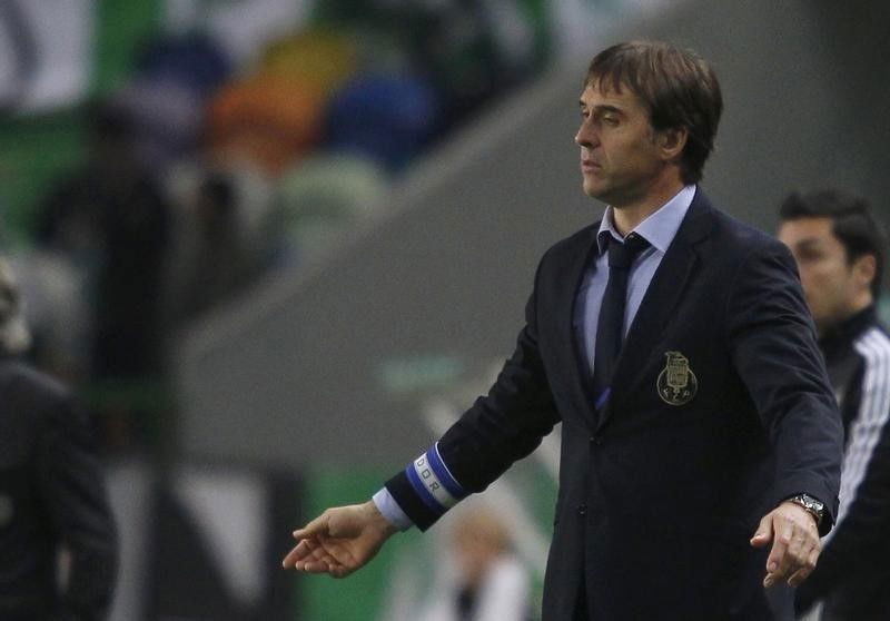 Football Soccer – Sporting v Porto – Portuguese Premier League – Alvalade, Lisbon, Portugal – 02/01/16. Porto’s coach Julen Lopetegui reacts. REUTERS/Hugo Correia
