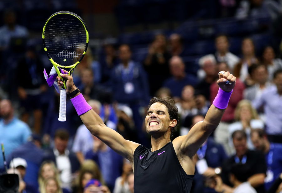 NEW YORK, NEW YORK – SEPTEMBER 06: Rafael Nadal of Spain celebrates his straight-sets victory to the crowd after his Men’s Singles semi-final match against Matteo Berrettini of Italy on day twelve of the 2019 US Open at the USTA Billie Jean King National Tennis Center on September 06, 2019 in Queens borough of New York City. (Photo by Clive Brunskill/Getty Images)