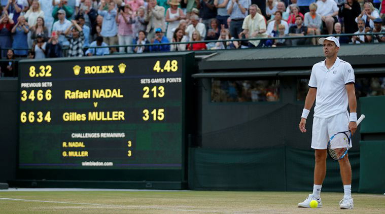 Tennis – Wimbledon – London, Britain – July 10, 2017 Luxembourg’s Gilles Muller during his fourth round match against Spain’s Rafael Nadal REUTERS/Matthew Childs