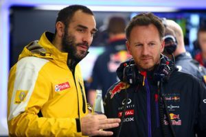 Renault F1 team boss Cyril Abiteboul and Red Bull team principal Christian Horner