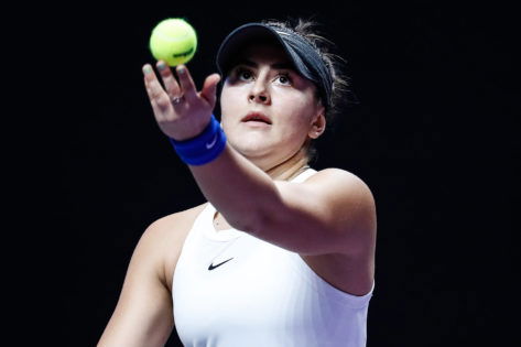 Bianca Andreescu of Canada serves in the Women’s Singles group match against Karolina Pliskova of the Czech Republic. It was on Day four of the 2019 WTA Finals. It was at Shenzhen Bay Sports Center on October 30, 2019 in Shenzhen, Guangdong Province of China. (Photo by VCG/VCG via Getty Images)