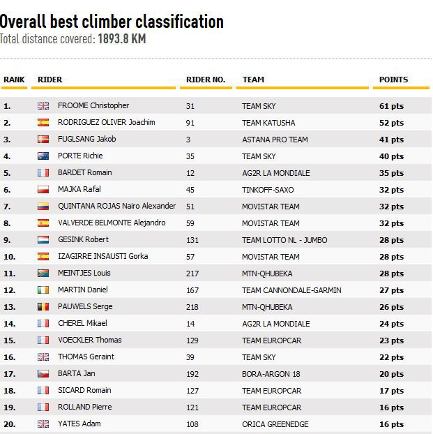 King of the Mountains Classification. Image courtesy of Tour de France website