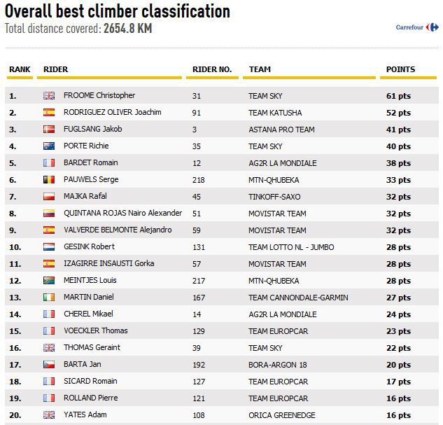 King of the Mountains Classification. Image courtesy of Tour de France website