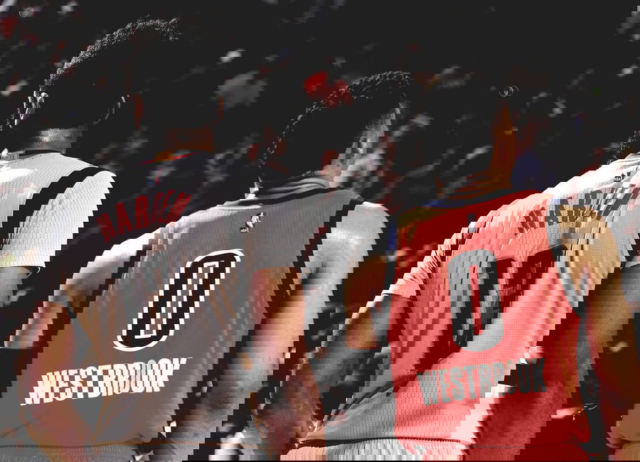 Westbrook moments after clinching his 42nd triple-double of the season.