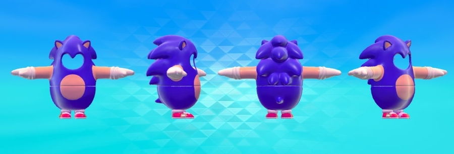 Mediatonic kept the original color scheme of the character intact. However, they morphed it to look like the usual jelly-bean shaped FG characters. The Sonic skin features the trademark blue fur coat with spikes, along with white hand gloves, and red shoes. Although, they changed the face so that the skin is in accordance with the staple characters available in the game.