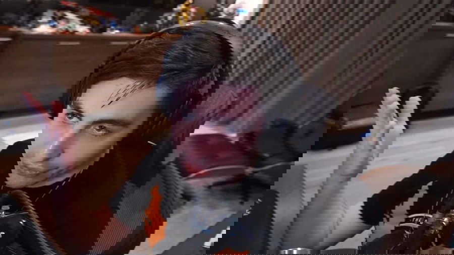 In Round 8 of the match, Michael has an easy kill on the opposing team’s woeful Jett with a 4 on 3 scenario. But he completely misses his shots, and the Jett takes Shroud’s kill, to everyone’s disbelief. For a player of his caliber, it is rare to miss a target. Michael realizes and rages hard by banging on his desk.