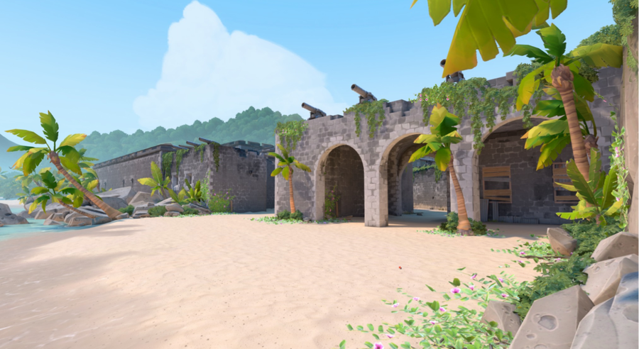 Breeze is heavily inspired by the beaches in The Caribbean. Accordingly, it has many large open spaces and grants a plethora of opportunities for flanking and long-range engagements. This further lets different weapons and agents create an impact in the community.