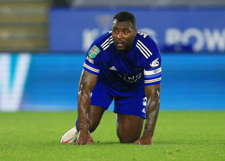 Mandatory Credit: Photo by Matt West/BPI/Shutterstock 10786831bp Wes Morgan of Leicester City Leicester City v Arsenal, EFL Carabao Cup Third Round, Football, King Power Stadium, Football, Leicester, UK – 23 Sep 2020 EDITORIAL USE ONLY No use with unauthorised audio, video, data, fixture lists, club/league logos or live services. Online in-match use limited to 120 images, no video emulation. No use in betting, games or single club/league/player publications. Leicester City v Arsenal, EFL Carabao Cup Third Round, Football, King Power Stadium, Football, Leicester, UK – 23 Sep 2020 EDITORIAL USE ONLY No use with unauthorised audio, video, data, fixture lists, club/league logos or live services. Online in-match use limited to 120 images, no video emulation. No use in betting, games or single club/league/player publications. PUBLICATIONxINxGERxSUIxAUTXHUNxGRExMLTxCYPxROMxBULxUAExKSAxONLY Copyright: xMattxWest/BPI/Shutterstockx 10786831bp