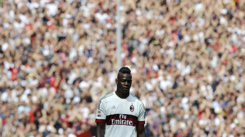 AC Milan’s Mario Balotelli reacts during their Italian Serie A soccer match against Genoa at the Marassi stadium in Genoa, September 27, 2015. REUTERS/Giorgio Perottino/Files