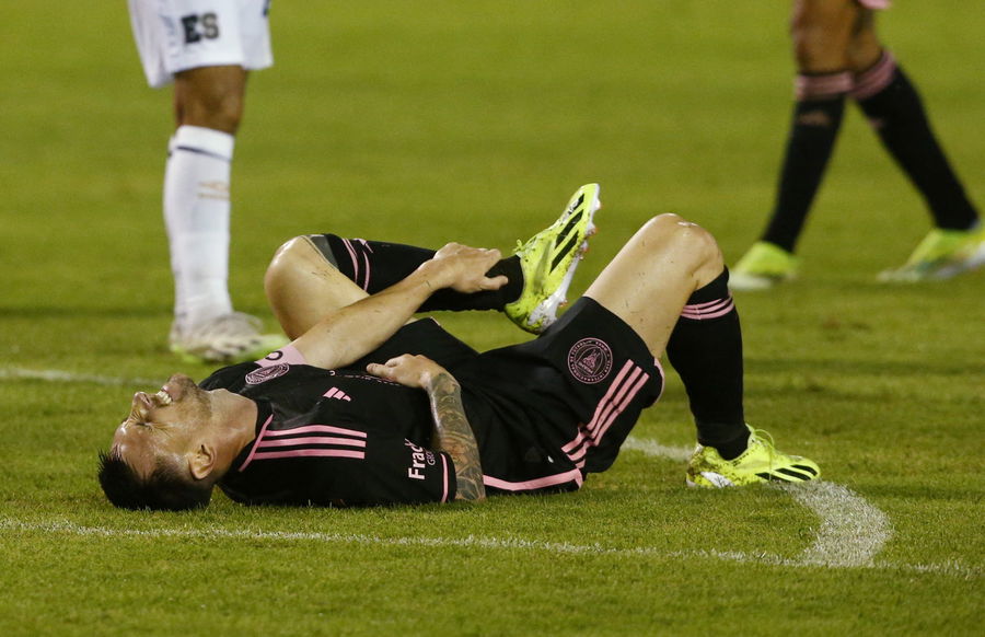 Soccer Football – International Friendly – El Salvador v Inter Miami – Estadio Cuscatlan, San Salvador, El Salvador – January 19, 2024 Inter Miami’s Lionel Messi reacts after sustaining an injury REUTERS/Jose Cabezas