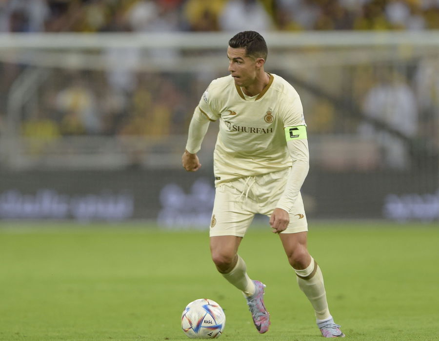 RIYADH, SAUDI ARABIA – MARCH 09: Cristiano Ronaldo of Al Nassr in possession during the Saudi Pro League match between Al Ittihad and Al Nassr at King Abdullah Sports City, Jeddah on March 9, 2023 in Riyadh, Saudi Arabia. (Photo by Khalid Alhaj/MB Media/Getty Images)