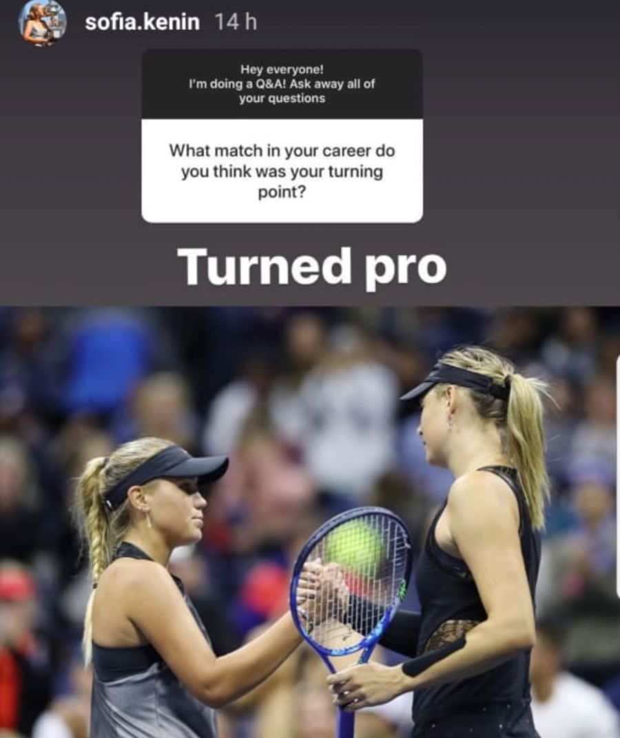 Kenin was also asked, “what match your career do you think was your turning point?” Kenin answered the question with her photo with former World No.1 Maria Sharapova at the US Open 2017.