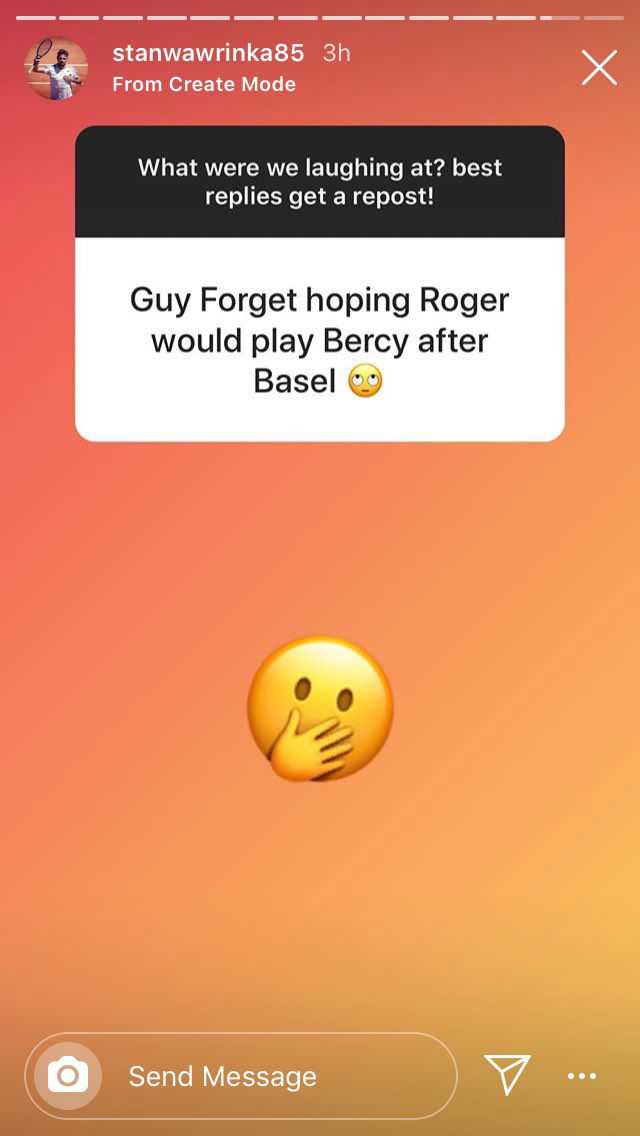 There were many funny replies, which Wawrinka reposted on his Instagram stories. In one of the best replies that Wawrinka posted, a fan suggested that Stan Wawrinka and Gael Monfils were laughing because “Guy Forget was hoping that Roger Federer would play Bercy after Basel.”