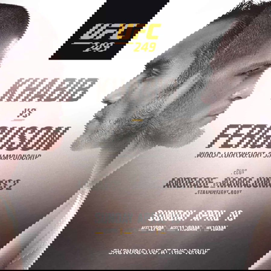 UFC 249 will feature Lightweight Champion Khabib Nurmagomedov defending his title against Tony Ferguson. The Main Card will also see Women’s strawweight champion Rose Namajunas defend her title against Jessica Andrade.