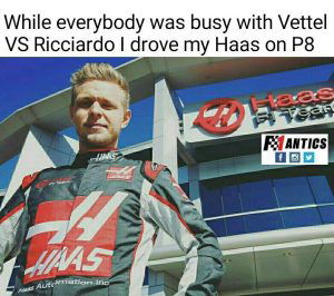 While all the action was happening at the front, Kevin Magnussen quietly snuck into the points and finished the race in P8 and 4 well deserved points for the Haas F1 team.
