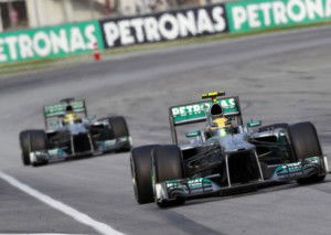 Towards the end of the race, Webber was leading with Vettel behind him and the Mercedes pair of Hamilton and Rosberg quite a way behind. With Vettel catching Webber on the faster medium tires, Vettel was asked not to overtake Webber and stay in formation. The same message was relayed to Rosberg who was behind Hamilton in 4th place.
