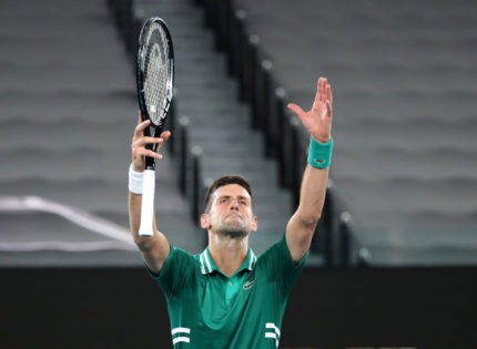 Tennis – Australian Open – Melbourne Park, Melbourne, Australia, February 17, 2021 Serbia’s Novak Djokovic celebrates. It was after winning his quarter final match against Germany’s Alexander Zverev REUTERS/Asanka Brendon Ratnayake