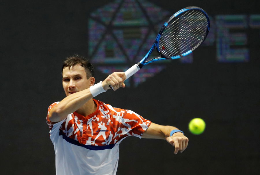 Russia’s Evgeny Donskoy in action during his second round match against Switzerland’s Stan Wawrinka REUTERS/Anton Vaganov