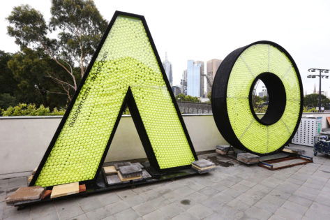 MELBOURNE, AUSTRALIA – JANUARY 05: The giant Australian Open logo is seen full of tennis balls. It was ahead of the 2019 Australian Open at Melbourne Park on January 05, 2019 in Melbourne, Australia. (Photo by Michael Dodge/Getty Images)