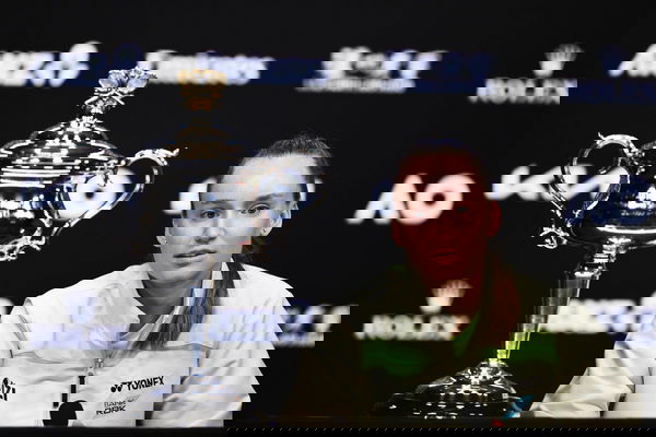 TENNIS AUSTRALIAN OPEN, Elena Rybakina of Kazakhstan speaks at a press conference, PK, Pressekonferenz after winning the womens singles final against Aryna Sabalenka of Belarus on day 14 of the 2026 Australian Open tennis tournament at Melbourne Park in Melbourne, Saturday, January 31, 2026. NO ARCHIVING MELBOURNE VICTORIA AUSTRALIA PUBLICATIONxNOTxINxAUSxNZLxPNGxFIJxVANxSOLxTGA Copyright: xJOELxCARRETTx 20260201193999201458
