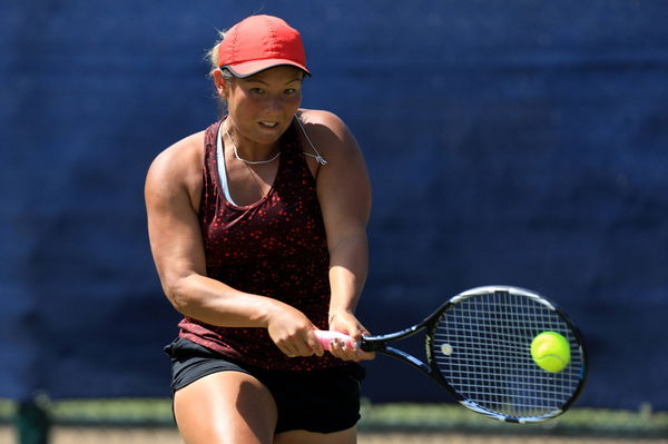 10th June 2018, Nottingham Tennis Centre, Nottingham, England; The Nature Valley Open Tennis Tournament; A dejected Tara Moore of Great Britain misses a forehand against Elena-Gabriela Ruse of Romania PUBLICATIONxINxGERxSUIxAUTxHUNxSWExNORxDENxFINxONLY ActionPlus12035321 ShaunxBrooks