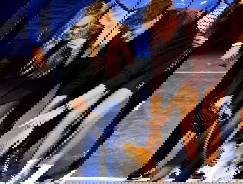 Foto IPP/Massimo Rana Torino 16-11-2025 Tennis ATP, Tennis Herren Finals 2025 – finale – nella foto Jannik Sinner insieme alla sua fidanzata la modella Laila Hasanovic e il cane di lei Snoopy mentre festeggiano la vittoria Italy Photo Press – World Copyright italy ITALY PUBLICATIONxNOTxINxITAxFRAxJPN Copyright: xR4924_italyphotopressx