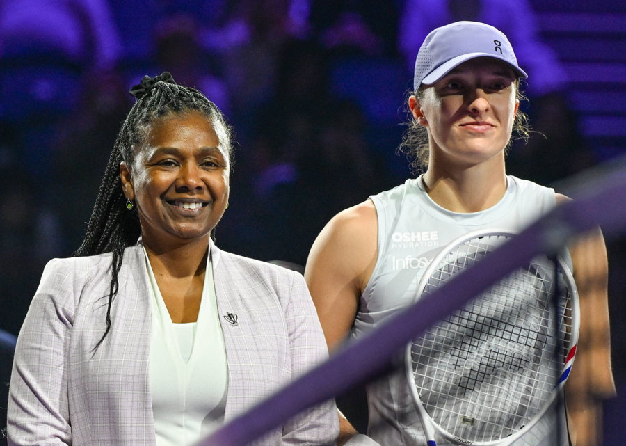 WTA, Tennis Damen Finals 2025 – Day Five RIYADH, SAUDI ARABIA NOVEMBER 5, 2025: Iga Swiatek of Poland seen with Portia Archer, CEO of the WTA, as they pose for a photo before the match against Amanda Anisimova of the United States during their group-stage match on Day 5 of the 2025 WTA Finals, part of the Hologic WTA Tour, at King Saud University Indoor Arena in Riyadh, Saudi Arabia, on November 5, 2025. Riyadh Saudi Arabia PUBLICATIONxNOTxINxFRA Copyright: xArturxWidakx originalFilename:widak-wtafinal251105_np989.jpg