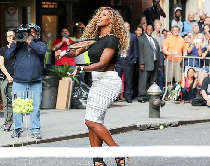 David Letterman and Serena Williams also played tennis on a court constructed outside the Ed Sullivan Theatre in New York.